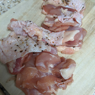 ・Try not to cut the chicken too small. It will shrink when you simmer it. I cut them into about 2 inch dice. Seasoning the chicken with generous amounts of salt & pepper is important.